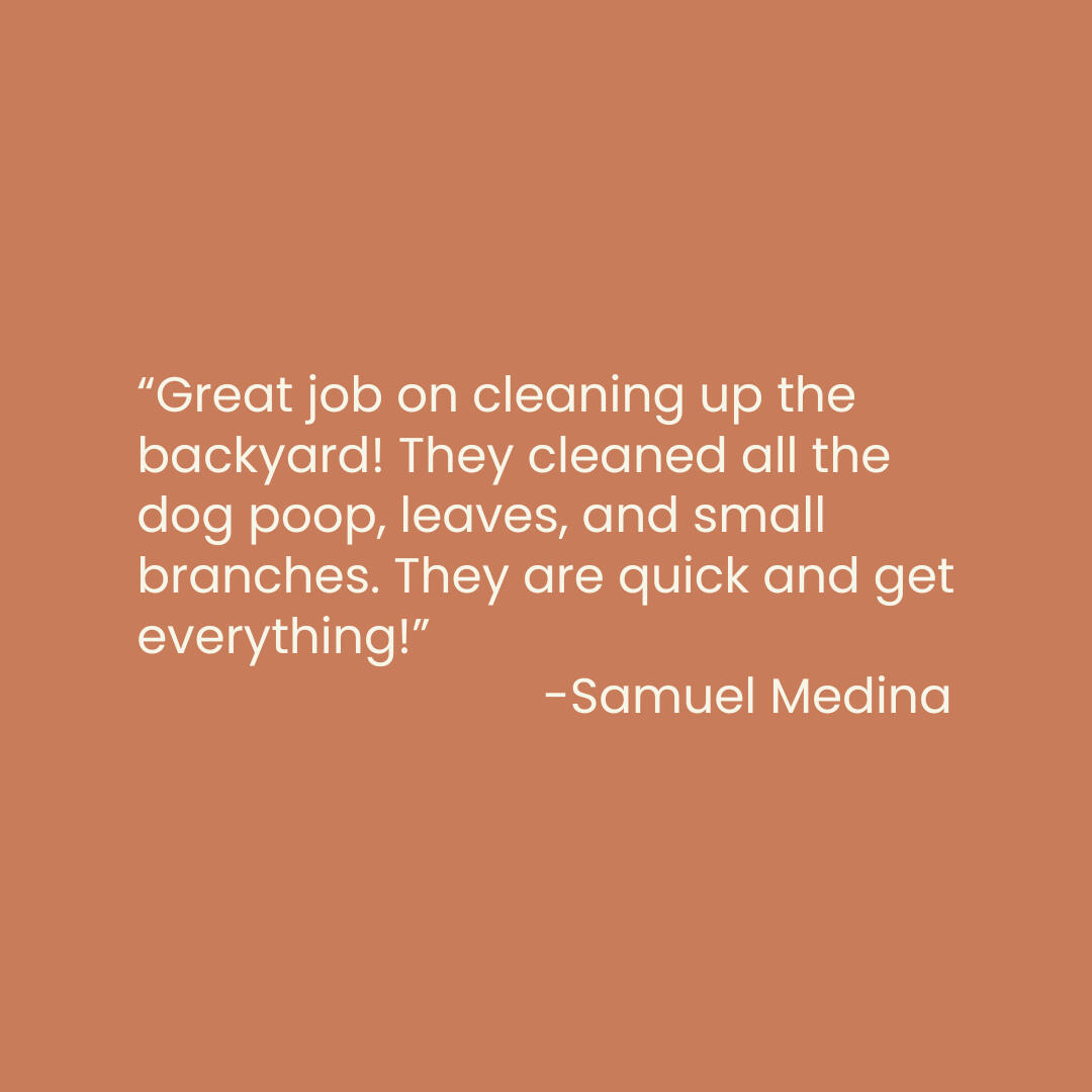 “Great job on cleaning up the backyard! They cleaned all the dog poop, leaves, and small branches. They are quick and get everything!”
