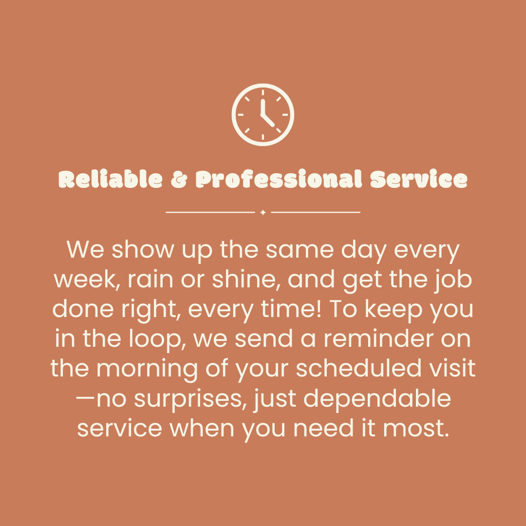 - Flexibility: No long-term commitments! You can cancel or adjust the frequency of your service anytime.