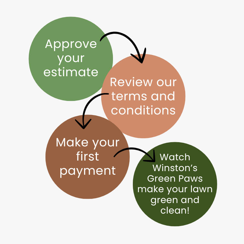 _For One-Time Services (Pet Waste Removal or Landscaping):1. Estimate: We’ll send you an estimate for the service.2. Approval & Invoice: Once you approve, we’ll send an invoice.3. Prepayment: A 50% deposit is required for projects over $100 to secure your spot on our route. For projects under $100, we kindly ask for full payment in advance. Once payment is received, we’ll schedule your service.4. Service Heads-Up and Job Completion: 10-40 minutes prior to arrival, we will send a quick message and let you know we are on our way. After arrival, we'll complete the job, close the gate, and send you a job summary (with photos if necessary).5. Final Payment: A final invoice will be sent upon completion of the work, reflecting the remaining balance. Payment is due in full immediately upon completion.6. Gate Photo: For those who have pets, we will send a photo of the locked gate at the end of the service.7. Enjoy!: Your yard is looking great!